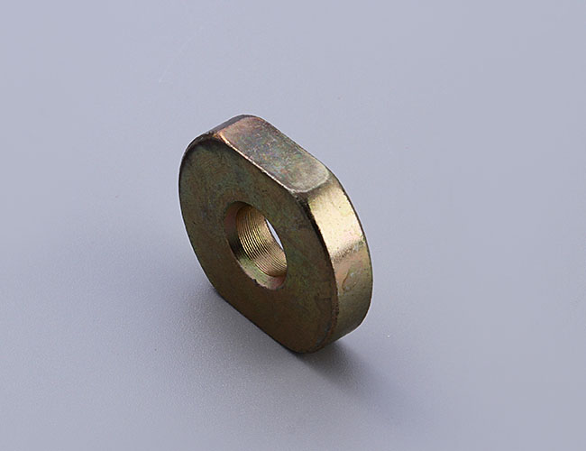 扁螺母、切邊圓螺母大多以細杆供貨,少許客戶有時需要粗杆產品。杆部倒角與否由製造者選擇。 扁螺母、切邊圓螺母由於采用低碳鋼生產,也無需熱處理,以不進行表麵處理或表麵鍍鋅為主,注意防止杆部麻斑、劃痕及保證長&杆的直線度。但是,冷鐓工藝生產的扁螺母、切邊圓螺母,應采用去應力回火處理,以避免產生螺栓“掉頭”。