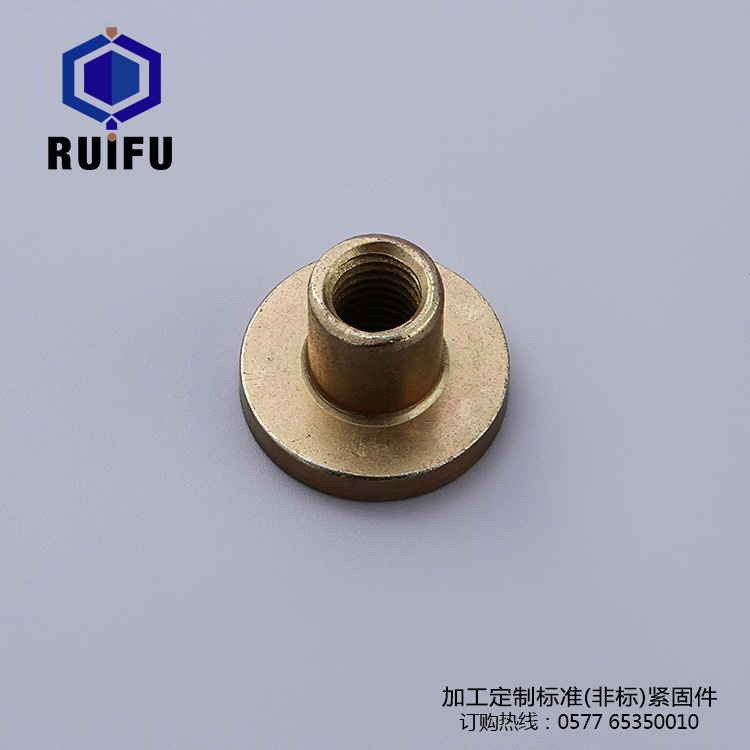 一般有普通六角頭螺母,T型圓螺母的概念比較廣泛,蝶型螺母,自鎖螺母等等,通常用於螺栓的聯接。小T型圓螺母用於固定傳動及轉動零件的軸向位移,也常配合止退墊圈,鎖緊滾動軸承的內圈,螺母裝拆需用勾形扳手。