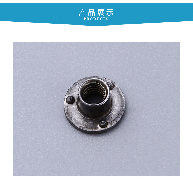 將止退墊片的一個牙鑲入螺母的缺口上,T型焊接螺母一般有4個缺口,缺口是留給墊圈用的主要是防止螺母工作一段時間後發生鬆動現象。通常的做法是用螺母上緊後,這樣螺母就不能鬆動了,滿圈牙的比六個牙的容易好對準缺口,滿圈牙的也能多用幾次。