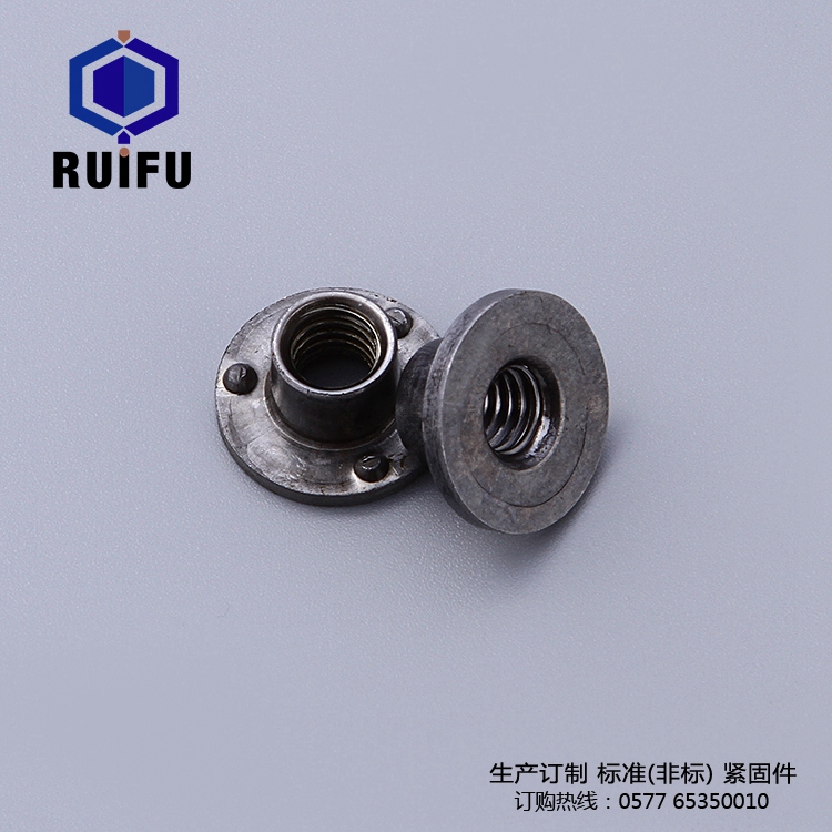 螺母扳擰槽所對應的墊圈外齒應折彎嵌入槽中,這樣螺母就被固定了,T型焊接螺母止動墊圈內外都有齒,與T型焊接螺母所配合的外螺紋上應製出孔眼或槽以納入墊圈內齒,T型焊接螺母旋緊就位後。