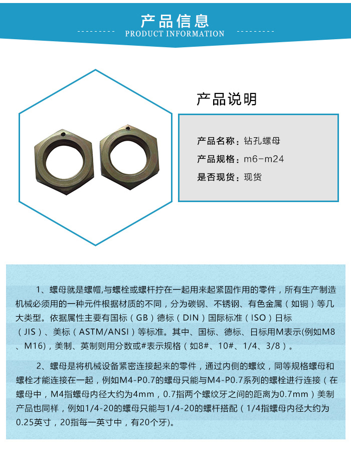 產品分類:鑽孔螺母
